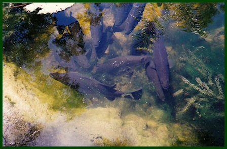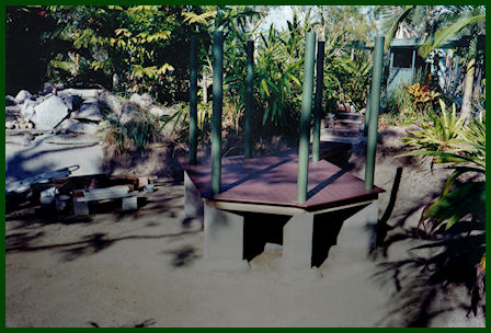Above: Most planned renovations completed to our budget for materials. We all know how expensive timber and landscaping materials are!!. Pond filled, some waterlilies and water weeds planted, just need to wait a few days for turbidity to clear before releasing fish - big stack of native Rainbows, and on December 4, 2000, we released 26 Barramundi juveniles.